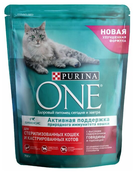 Сухой корм для кошек Purina ONE для стерилизованных, с говядиной и пшеницей, 750 г