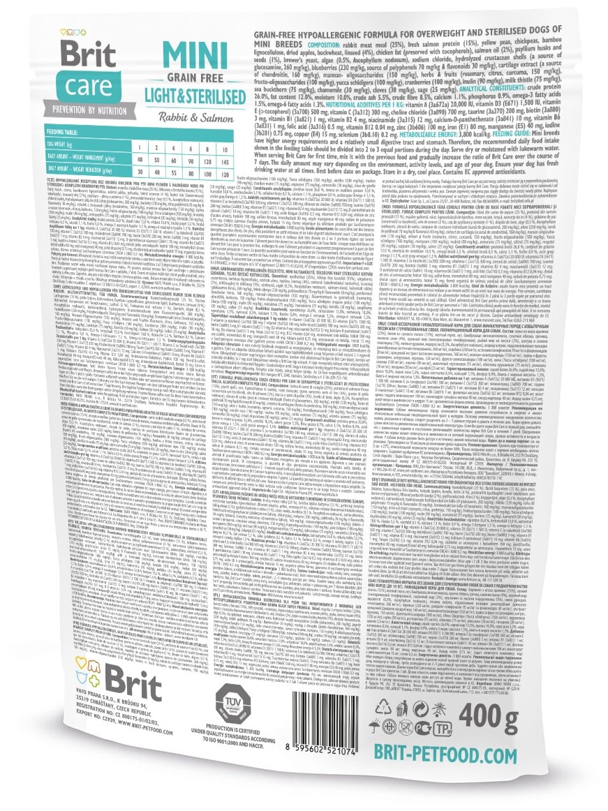 Лучшие цены. Brit Care Mini Light & Sterilised. Сухой беззерновой гипоаллергенный корм для собак миниатюрных пород с избыточным весом или стерилизованных собак. Полнорационный корм для собак. Магазины в вашем городе.