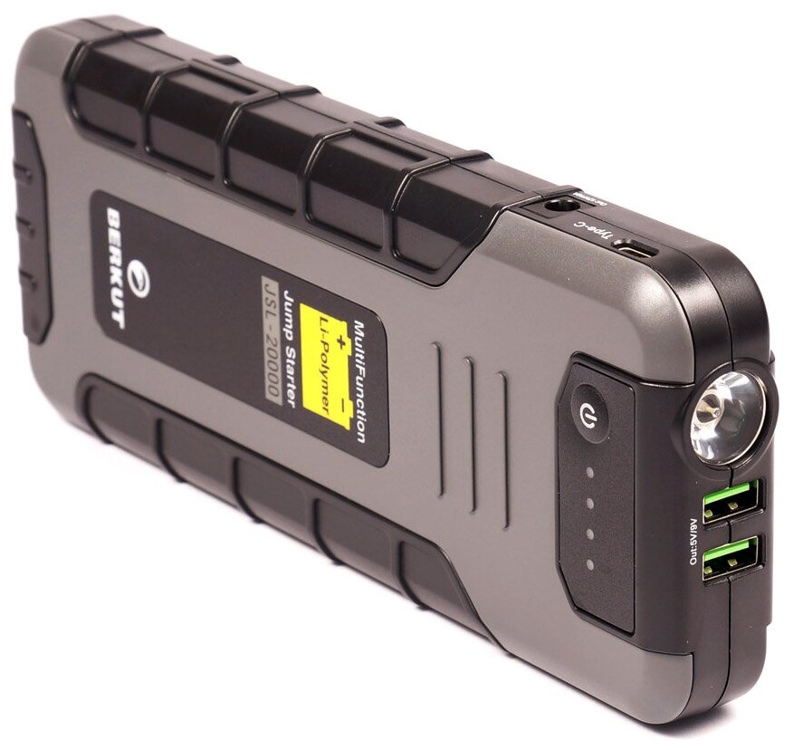 BERKUT JSL-20000 / Пуско зарядное устройство для аккумуляторов автомобиля + Power Bank + LED фонарь, Пуско-зарядное автомобильное устройство с быстрой зарядкой (Quick Charge), 18000 мАч