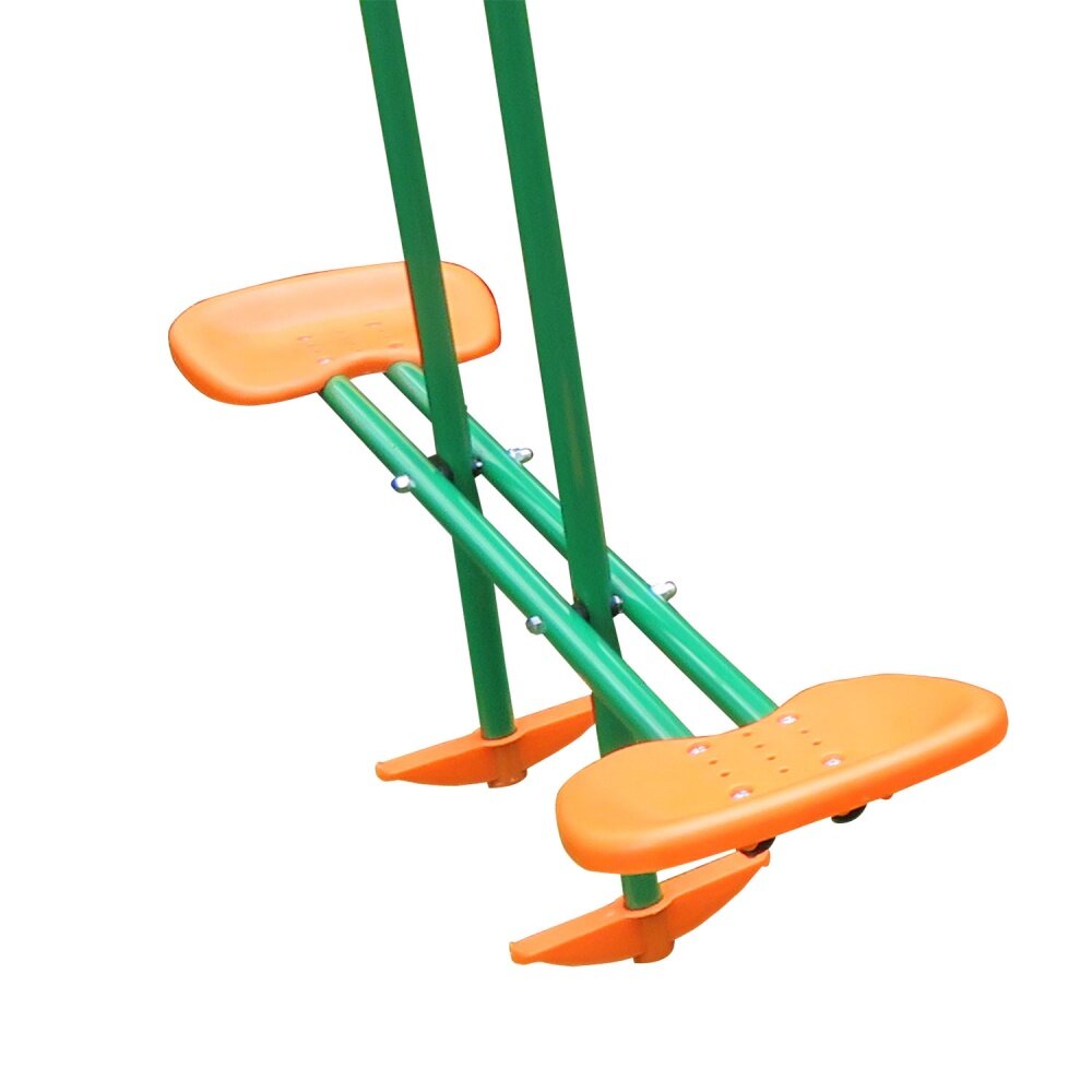 Лучшие цены. Детский игровой комплекс для установки на улице, в парке или на даче. Комплекс включает в себя: двухместные качели, качели для малышей и горку. Регулируемые по высоте веревки для качелей. Спускной желоб и сидение качелей изготовлены из пластика. Комплекс подходит для детей в возрасте от 3 до 10 лет. На качели для малышей допускаются только детишки в возрасте от 18 до 36 месяцев. Материалы и размеры. Металл - сталь, покрытие - порошковая краска. Пластмасса - устойчивая к воздействию солнечных лучей. Магазины в вашем городе.