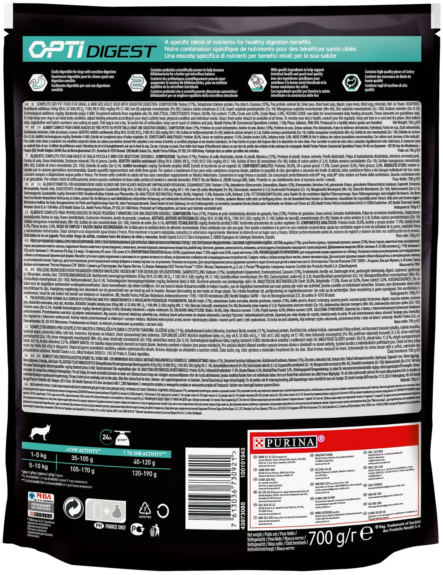 Корм PRO PLAN Small & Mini OPTI DIGEST (комплекс для поддержания здорового пищеварения) (беззерновой) для собак малых и миниатюрных пород с чувствительным пищеварением, с индейкой, 7 кг