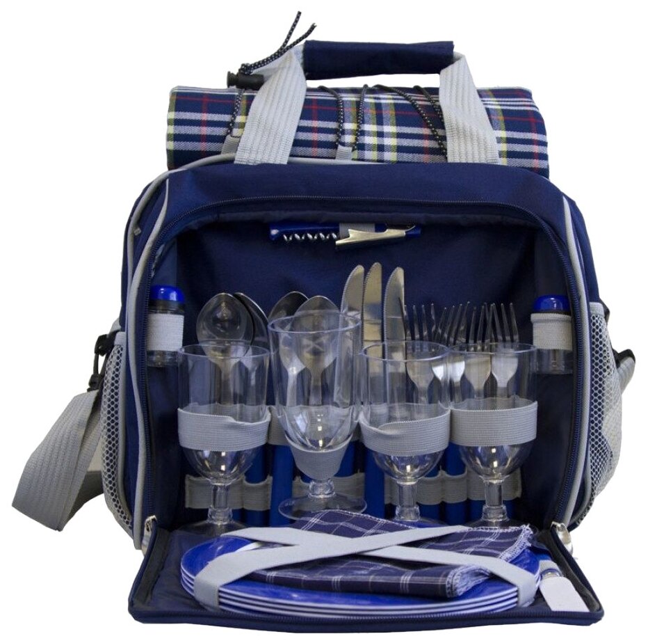 Лучшие цены. Набор для пикника Green Glade TWPB-3063: Объём термо сумки, л: 20 Размер упаковки, см: 35 х 25 х 17 Размер сумки, см: 38 х 32 х 22 Вес, кг: 2,44 Сохраняет температуру, часов: 12 Цвет: синий Внутри сумки имеется все необходимые столовые приборы на четыре персоны: ложки, вилки, ножи, тарелки, солянка, перечница, штопор, бокалы. Они аккуратно вставляются в кармашки на стенке сумки и надёжно держатся. С таким набором всё нужное для приёма пищи под рукой. Магазины в вашем городе.