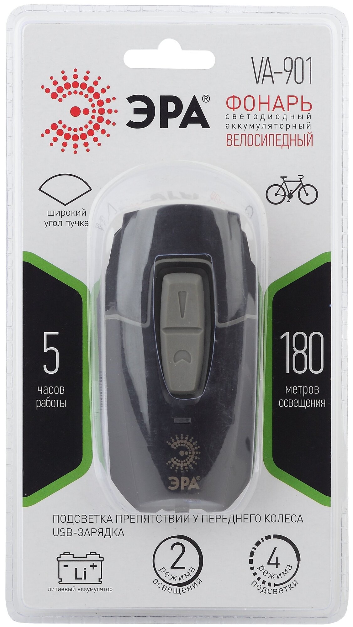 Велосипедный фонарь светодиодный ЭРА VA-901 аккумуляторный передний usb черный
