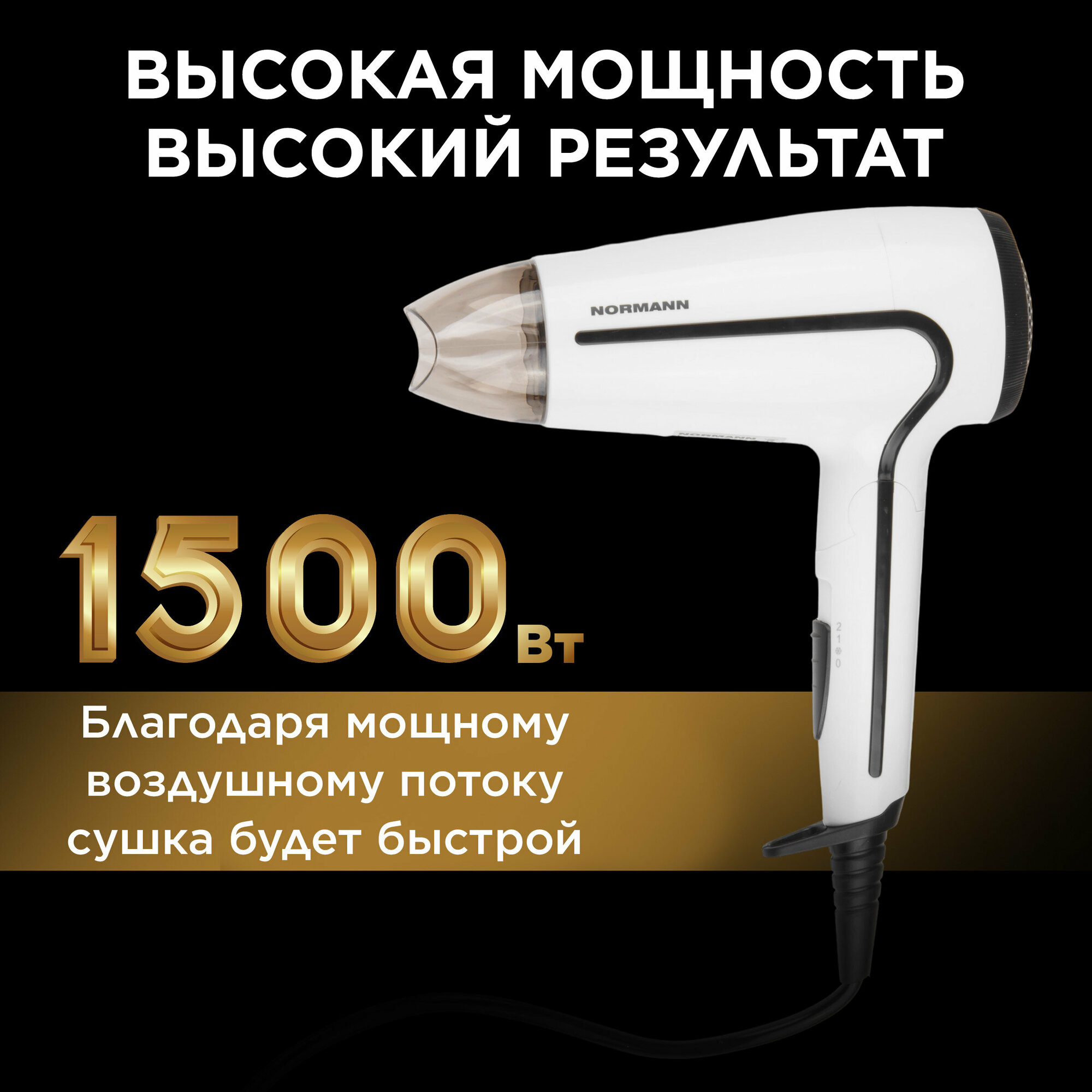 Фен NORMANN AHD-422 (1500 Вт; 2 режима; холод.обд.; складная ручка) (AHD-422)