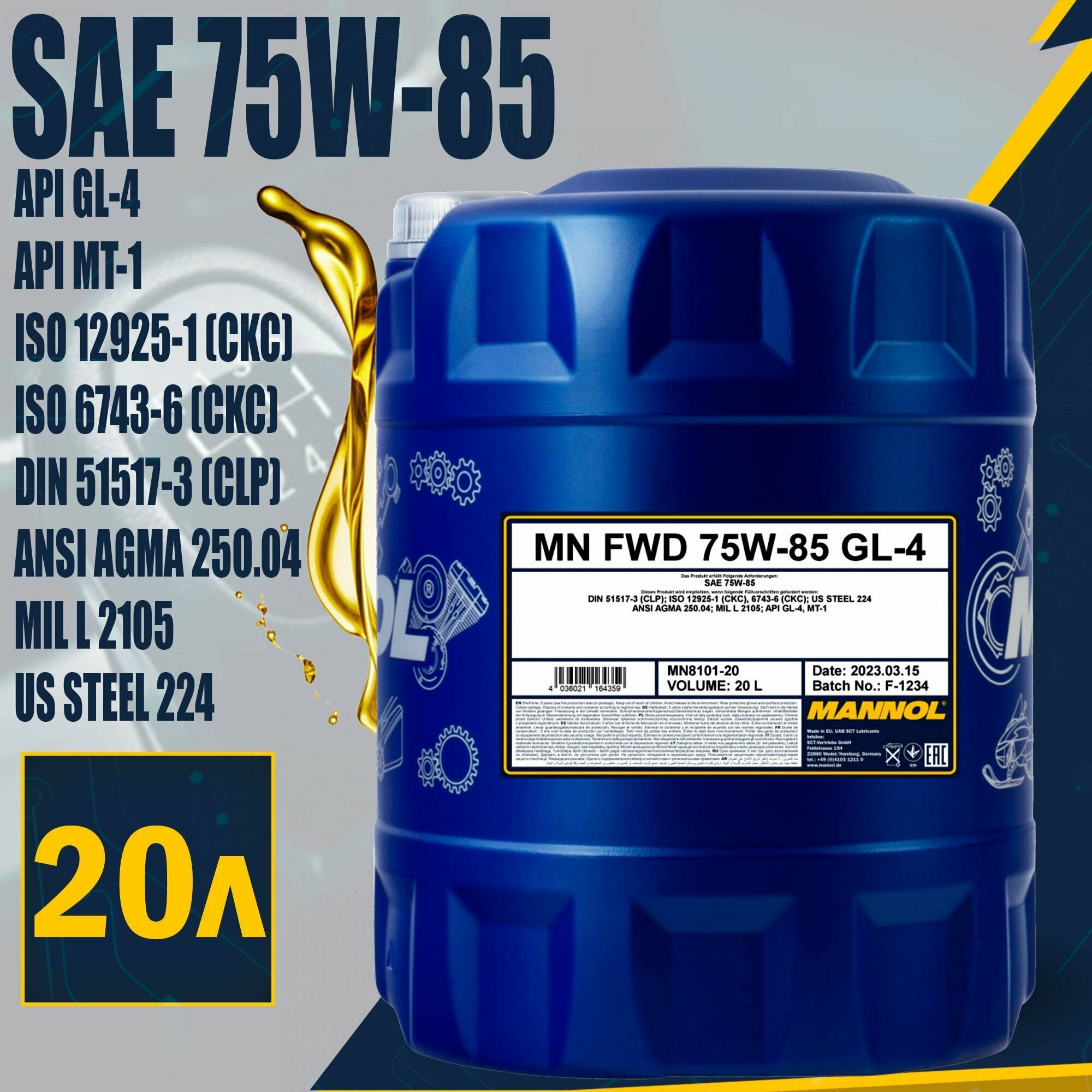 MANNOL MN8101-20 8101-20 MANNOL FWD GETRIEBEOEL 75W85 20 л. Полусинтетическое трансмиссионное масло 75W-85