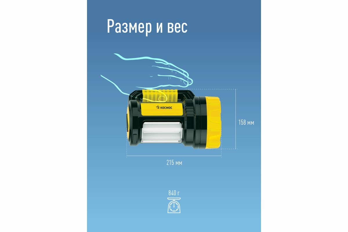 Фонарь со светильником аккумуляторный Космос Ac2005W, черный/желтый