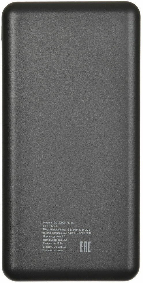 Мобильный аккумулятор DIGMA Power Delivery DG-20000-PL-BK QC 3.0 PD(18W) черный (dg-20000-pl-bk)
