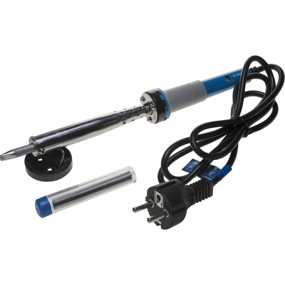 Паяльники ЗУБР 100Вт в наборе: припой + подставка, 2-комп. рукоятка, клин, керамический нагреватель, Электропаяльник (55402-100)