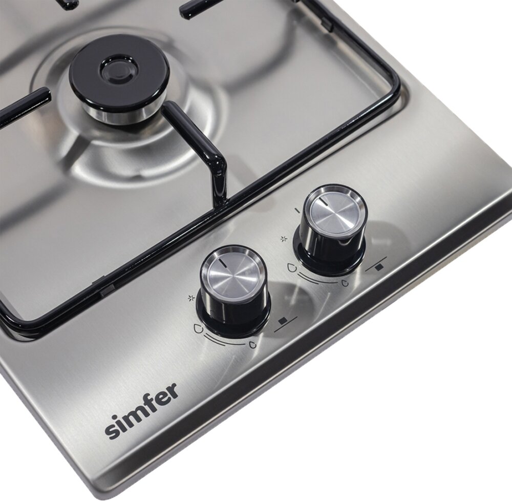 Лучшие цены. Газовая варочная панель Simfer H30V20M411 - модель, которая благодаря своим компактным размерам органично впишется в интерьер вашей кухни и сделает ежедневный процесс приготовления еды комфортным. Рабочая поверхность выполнена из нержавеющей стали – прочного и долговечного материала. На ней располагаются две конфорки - разные по диаметру и мощности пламени в них. А значит вы сможете выбрать оптимальную конфорку для приготовления разнообразных блюд. Магазины в вашем городе.
