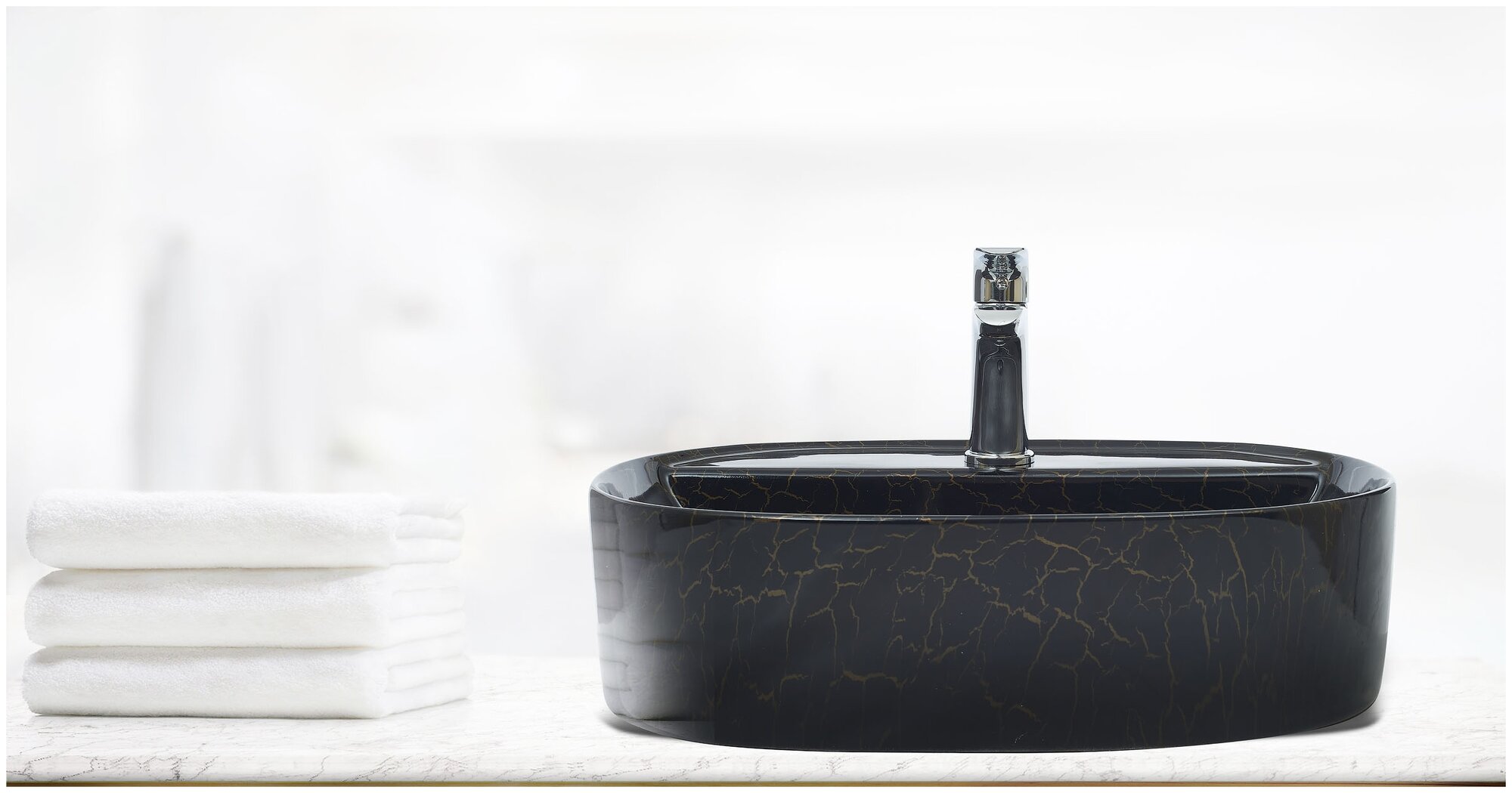 Раковина Weltwasser SK Elbach 2202 K509 накладная, 51x39 см, цвет мрамор черный с золотом (10000004548)