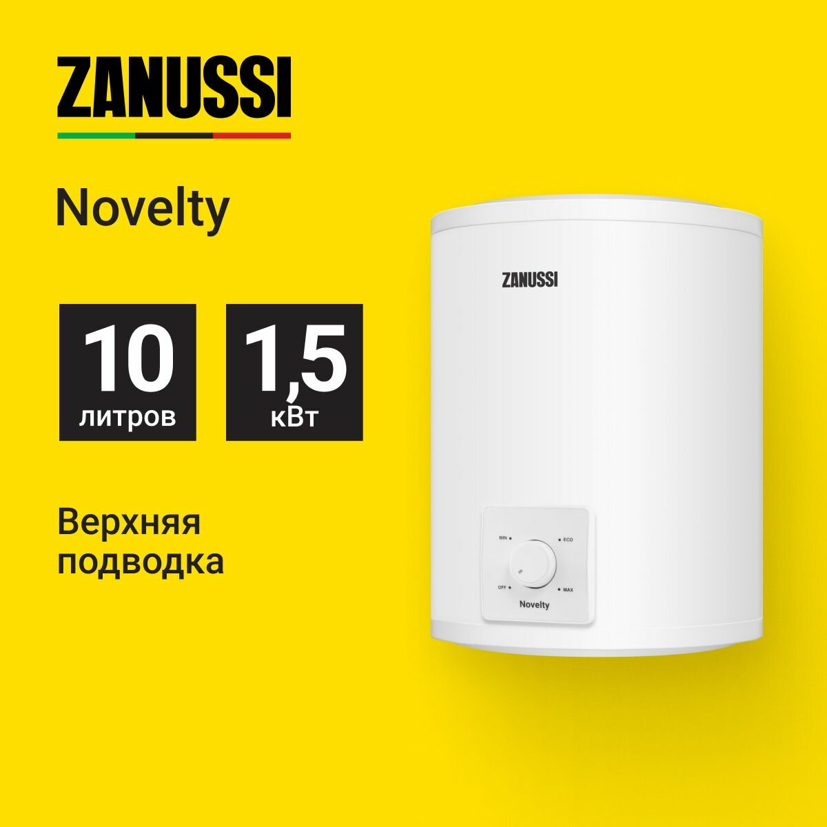 Водонагреватель накопительный 10 л Zanussi ZWH/S 10 Novelty U 1.5 кВт вертикальный нержавеющая сталь мокрый ТЭН