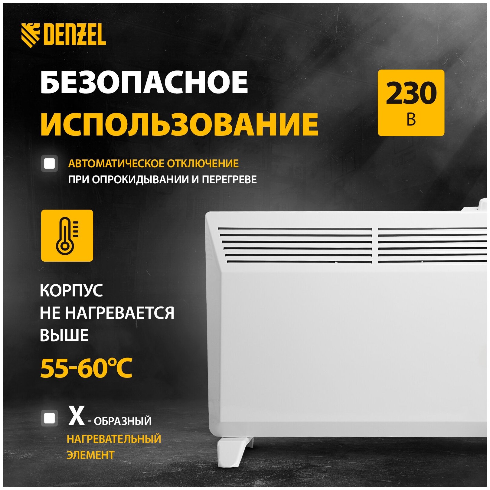 Конвектор электрический XCE-1500, 230 В, 1500 Вт, X-образный нагреватель// Denzel 98116 .