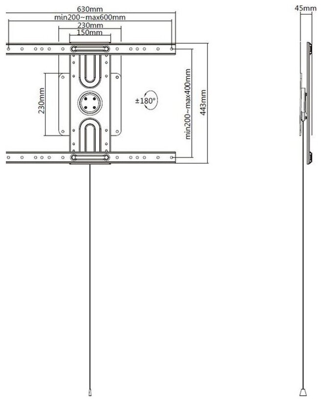 | Крепление VESA | 100x100 мм / 100x200 мм / 200x100 мм / 200x200 мм / 200х300 мм / 200x400 мм / 300x200 мм / 300x300 мм / 300x400 мм / 400x200 мм / 400x300 мм / 400x400 мм / 500x400 мм / 600x400 мм |