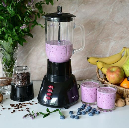 Лучшие цены. MARTA MT-1569 темный гранат блендер стационарный Этот стационарный блендер предназначен для измельчения, взбивания и смешивания различных продуктов до однородной массы. С его помощью можно приготовить полезные смузи и коктейли, а также ароматные супы-пюре и соусы. В комплекте поставляется насадка для измельчения зерен, орехов и специй. Мощный двигатель обеспечивает надежность и высокую скорость измельчения. Для оптимальной работы предусмотрены 2 скорости вращения ножей и импульсный режим. Магазины в вашем городе.