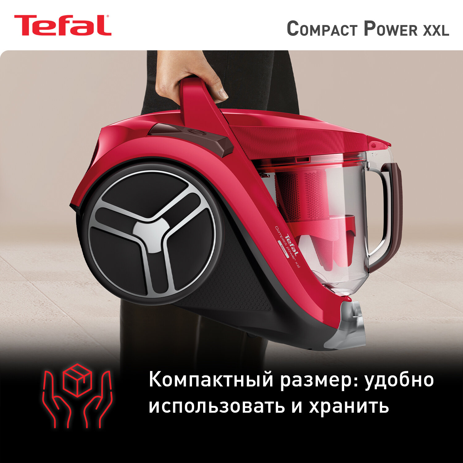 Лучшие цены. Пылесос Tefal Compact Power XXL идеально подходит как для небольшой квартиры, так и для большого дома, сочетая впечатляющую эффективность и большую вместимость в компактном корпусе. Многоразовый контейнер объемом 2,5 л создан для комфортного использования его объемам хватает на несколько уборок, после чего его легко опустошить в мусорную корзину. Компактный и эргономичный корпус обеспечивает не только комфортное использование, но удобное хранение пылесос занимает совсем немного места в шкафу. Магазины в вашем городе.