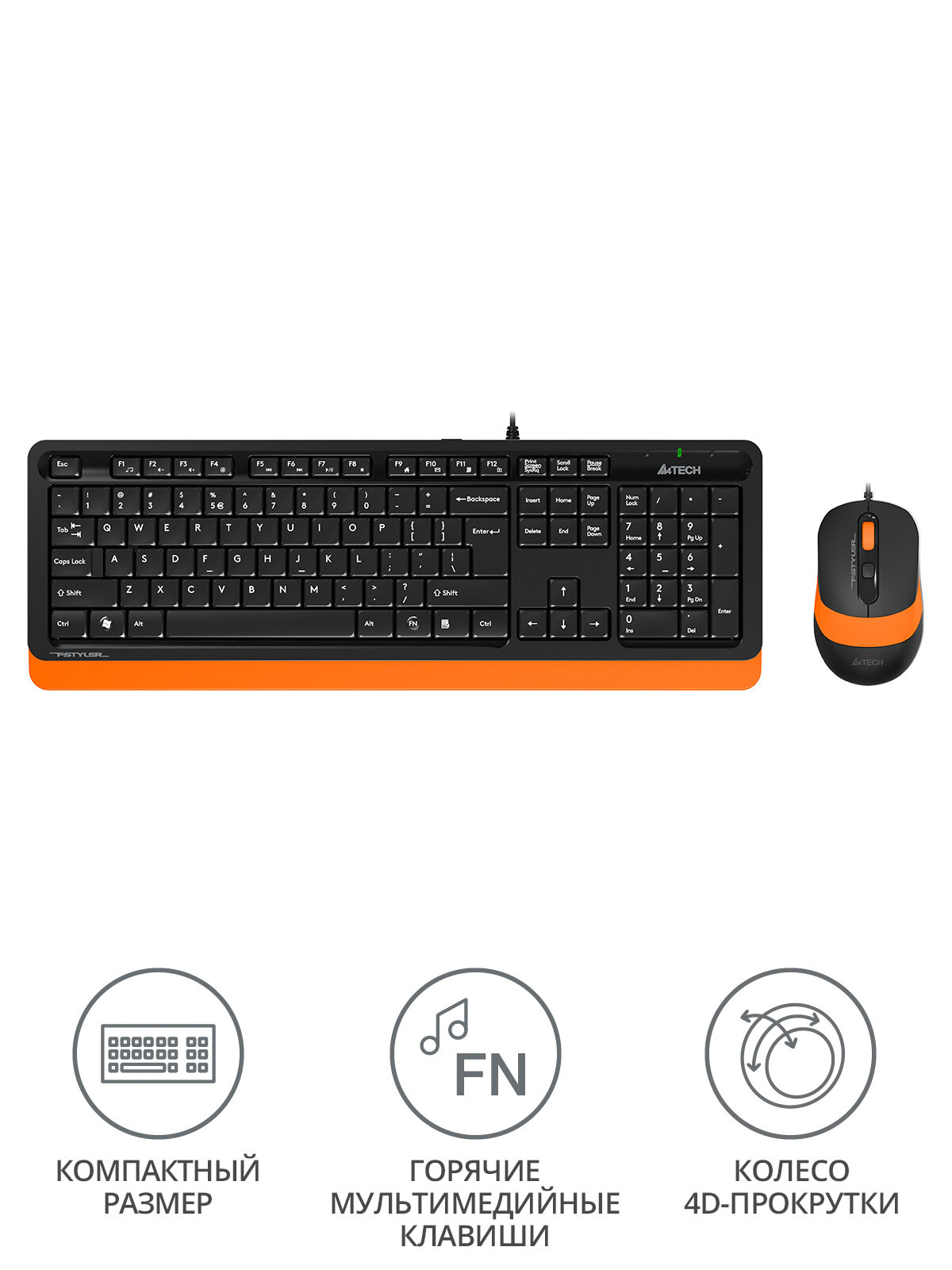Комплект мыши и клавиатуры A4Tech Fstyler F1010 черный/оранжевый