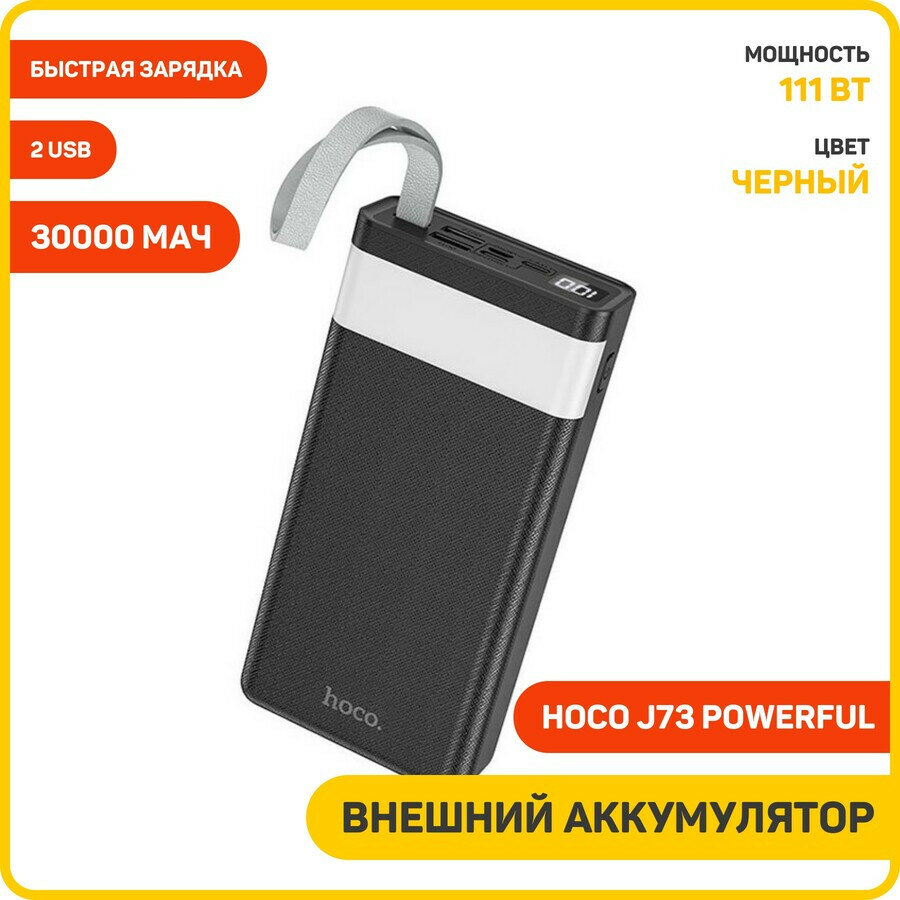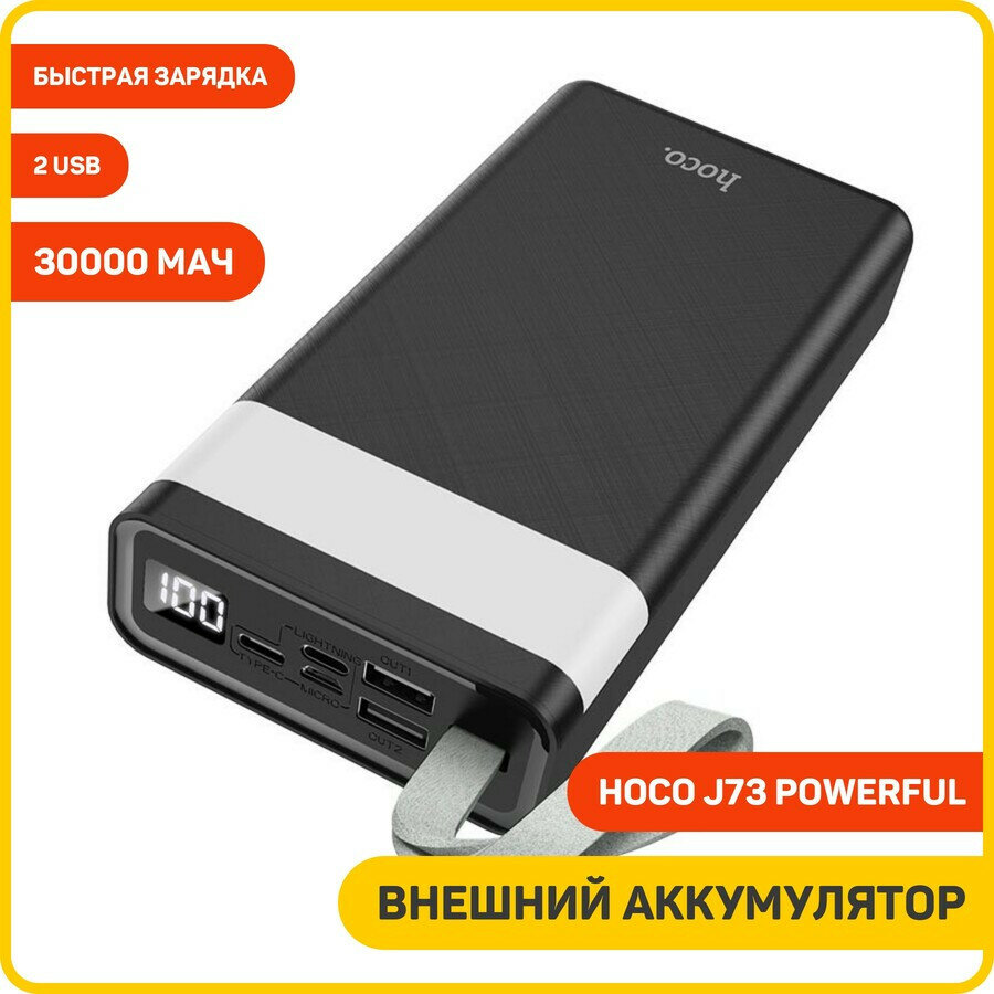 Power bank Внешний аккумулятор Hoco J73 30 000 mAh с фонариком черный