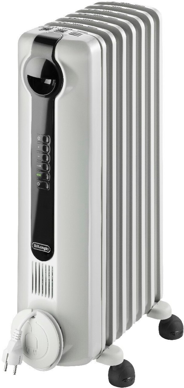 Лучшие цены. Масляный радиатор DeLonghi Radia S TRRS0715E создаст комфортное тепло в помещениях площадью до 45 кв. м. Прибор компактный (16 x 39,2 x 65 см), выполнен в сдержанном лаконичном дизайне и в любом современном интерьере будет выглядеть уместно. У этой модели семь секций. Нагретое масло долго удерживает тепло, что делает устройство более эффективным и экономичным: оно продолжает греть даже после отключения. На сокращение расхода электроэнергии работают также технология Real Energy (постепенное повышение нагрева). Магазины в вашем городе.