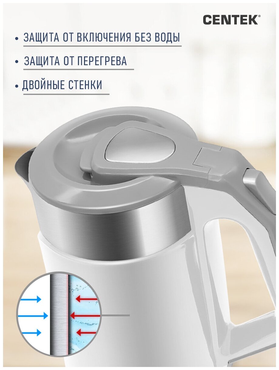 Чайник Centek CT-0023 White 2.0л <2000W> двойн. корпус - сталь+пластик, двойная стенка, сохран тепла