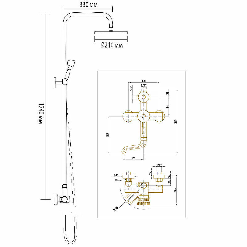 | Размеры верхнего душа | 210 мм |