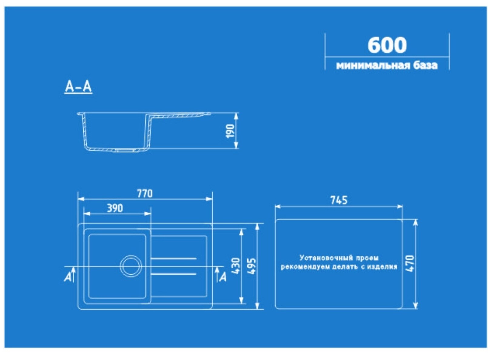 | Минимальная ширина шкафа (базы) | 600 мм |
