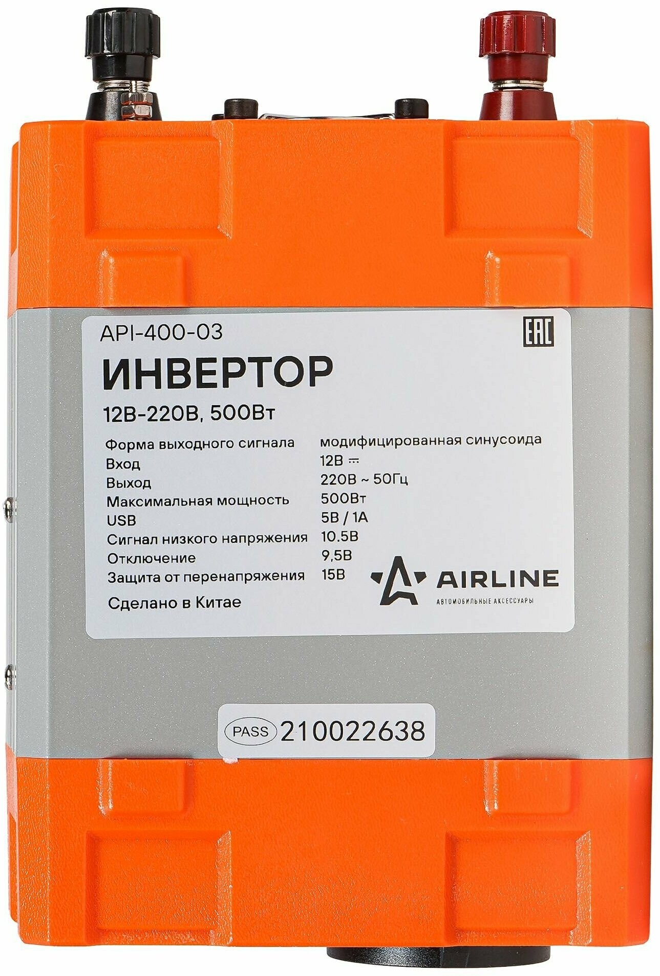 Инвертор AIRLINE API-400-03 500W серебристый/оранжевый
