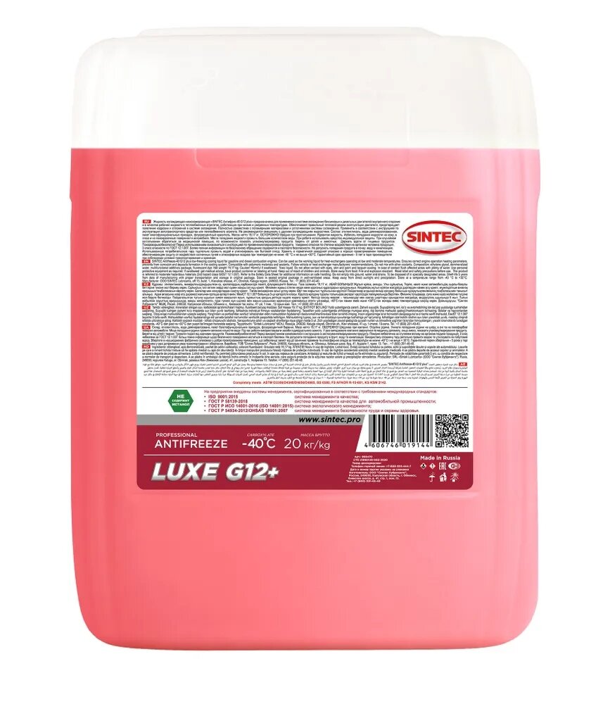 Sintec Antifreeze Lux G12+ (-40) (Красный) 20кг, 990470 SINTEC арт. 990470