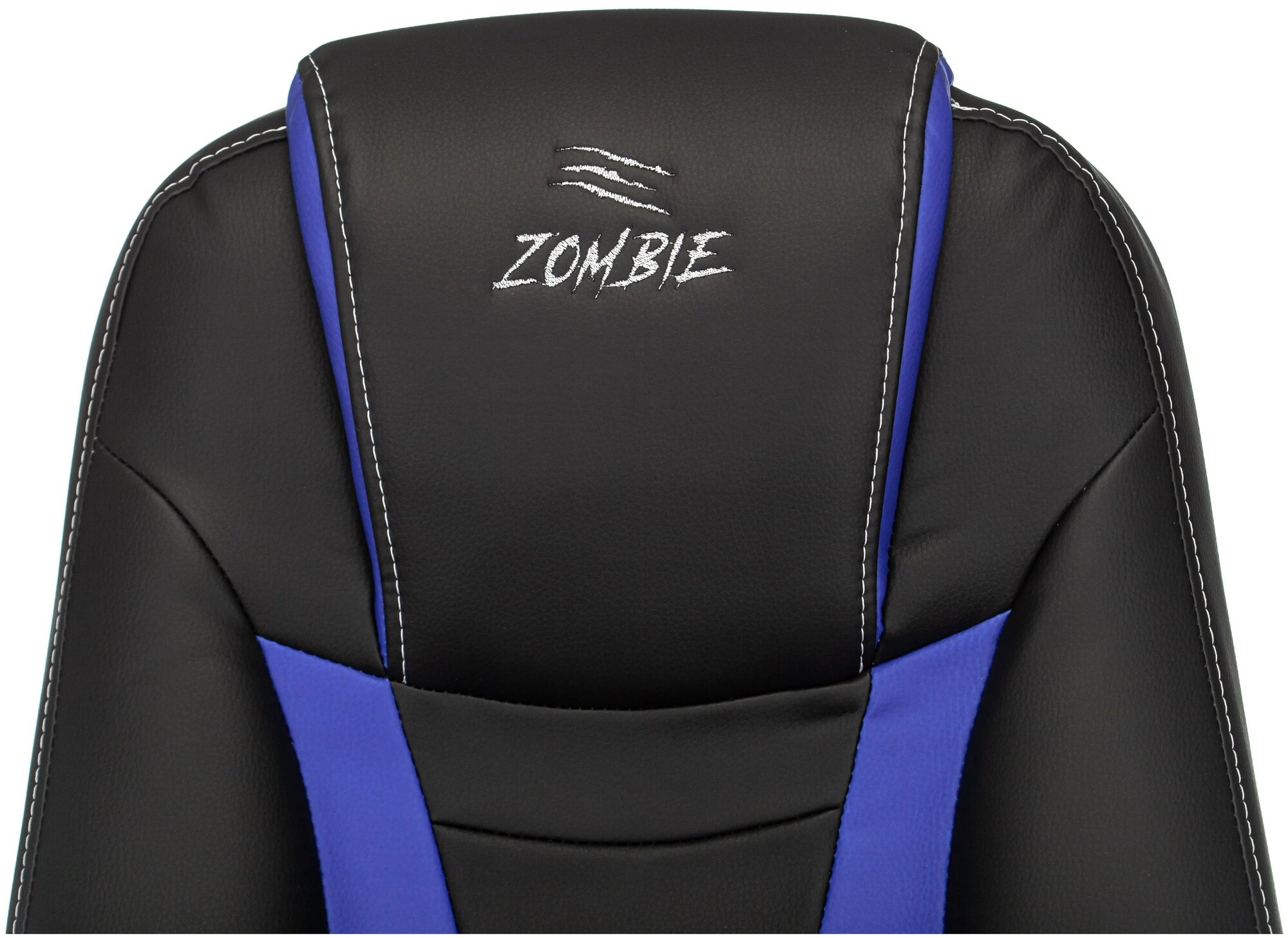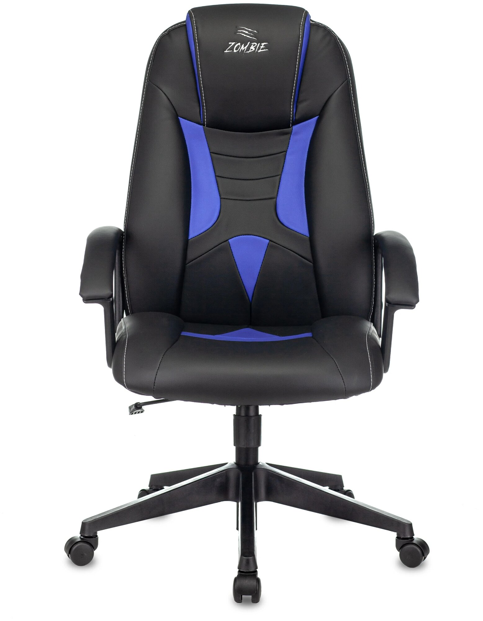 Кресло компьютерное игровое Zombie, экокожа, черное, синее, крестовина пластик - Кресло геймерское, с подголовником