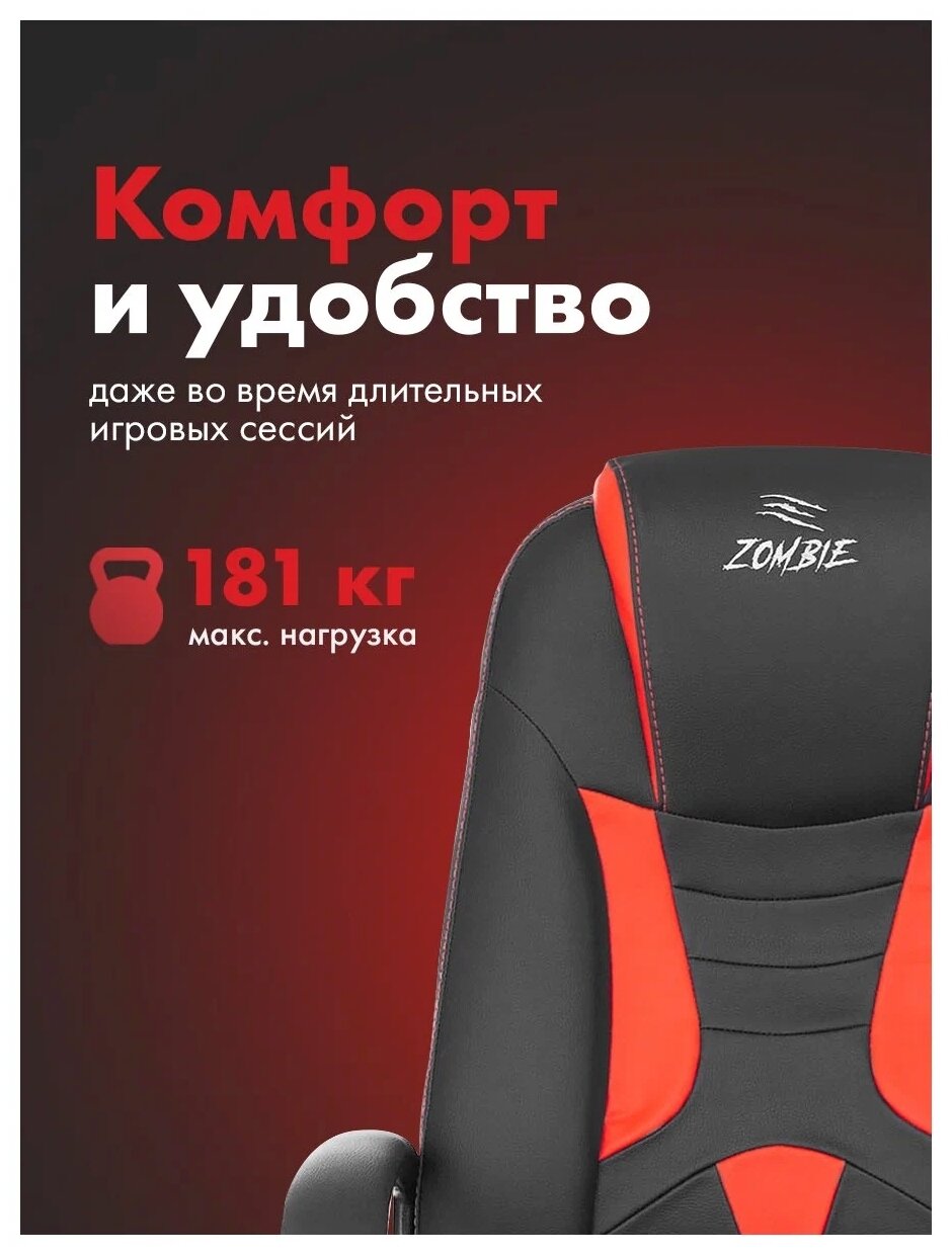 Кресло компьютерное ZOMBIE 8, экокожа, черное/красное
