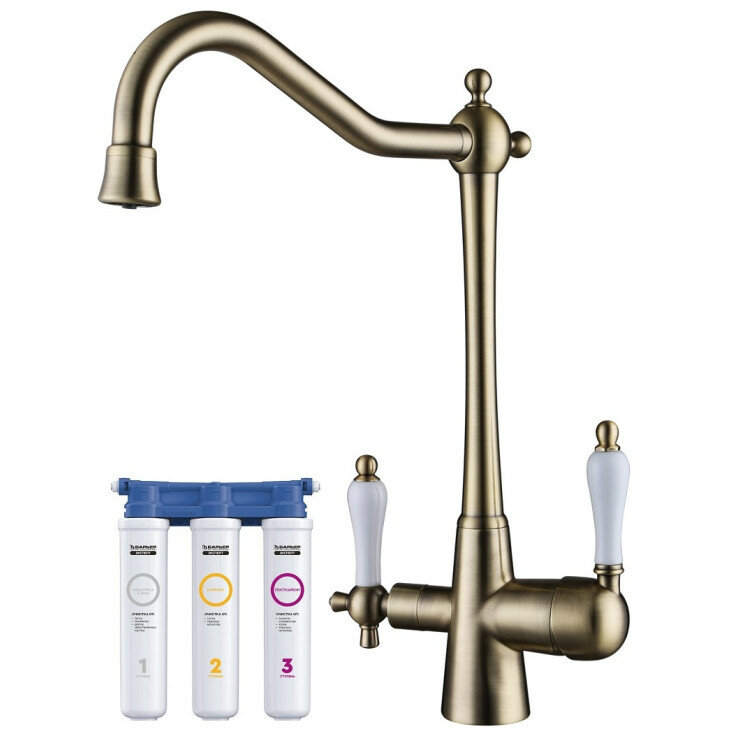 Смеситель кран для кухни и кухонной мойки с фильтром для питьевой воды Kaiser Vincent бронзовый 31844-3