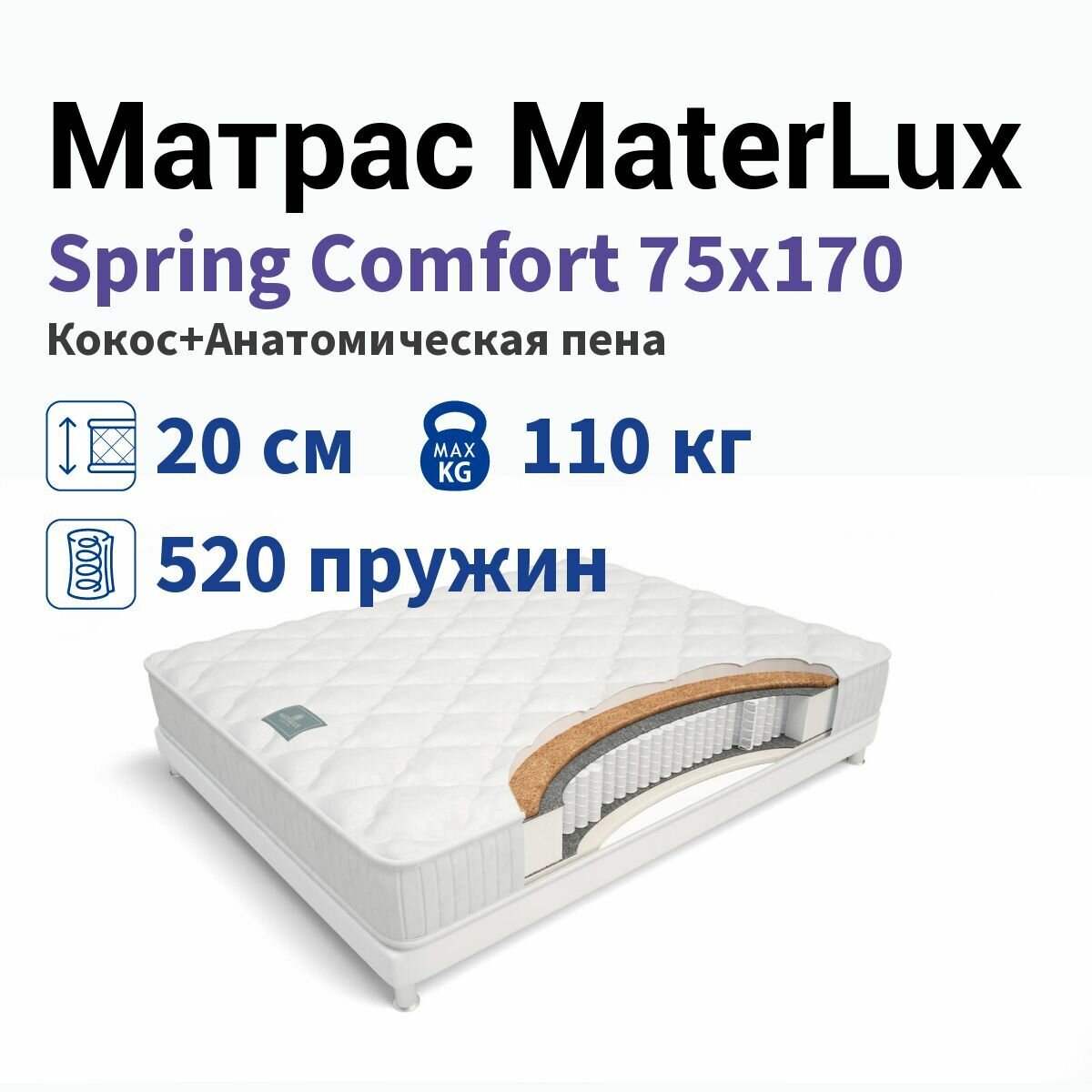 Матрас MaterLux Spring comfort 80х190, стандартный