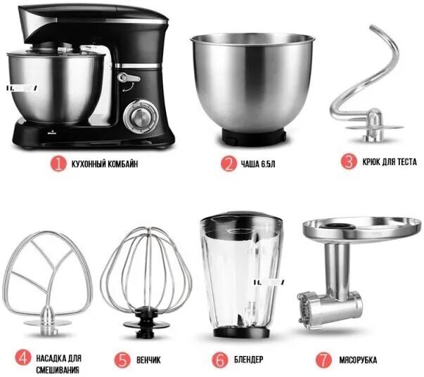 | Аксессуары | венчик для взбивания / биттер для перемешивания / насадка / крюк для замеса теста |