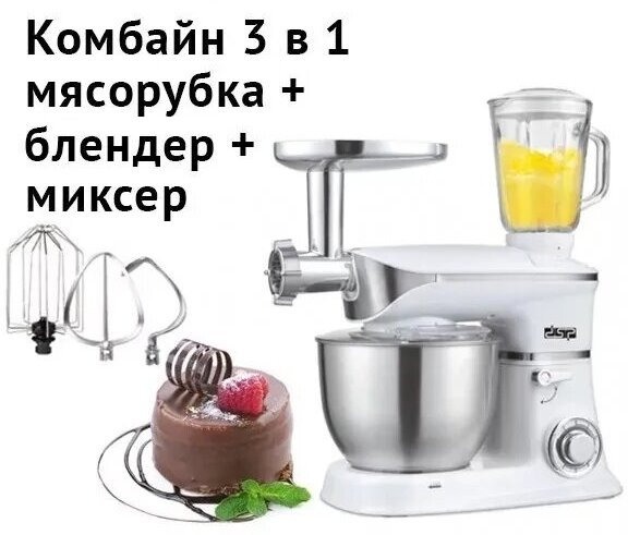 Лучшие цены. Кухонный комбайн DSP KM 3031 - это профессиональный инструмент, который поможет вам легко и быстро приготовить любимые блюда. Он имеет мощный миксер, блендер и мясорубку, что позволяет выполнять различные задачи по приготовлению пищи. Чаша объемом 6,5 литров позволяет готовить большие порции блюд, а 6 скоростей позволяют выбрать оптимальный режим для каждого блюда. Магазины в вашем городе.
