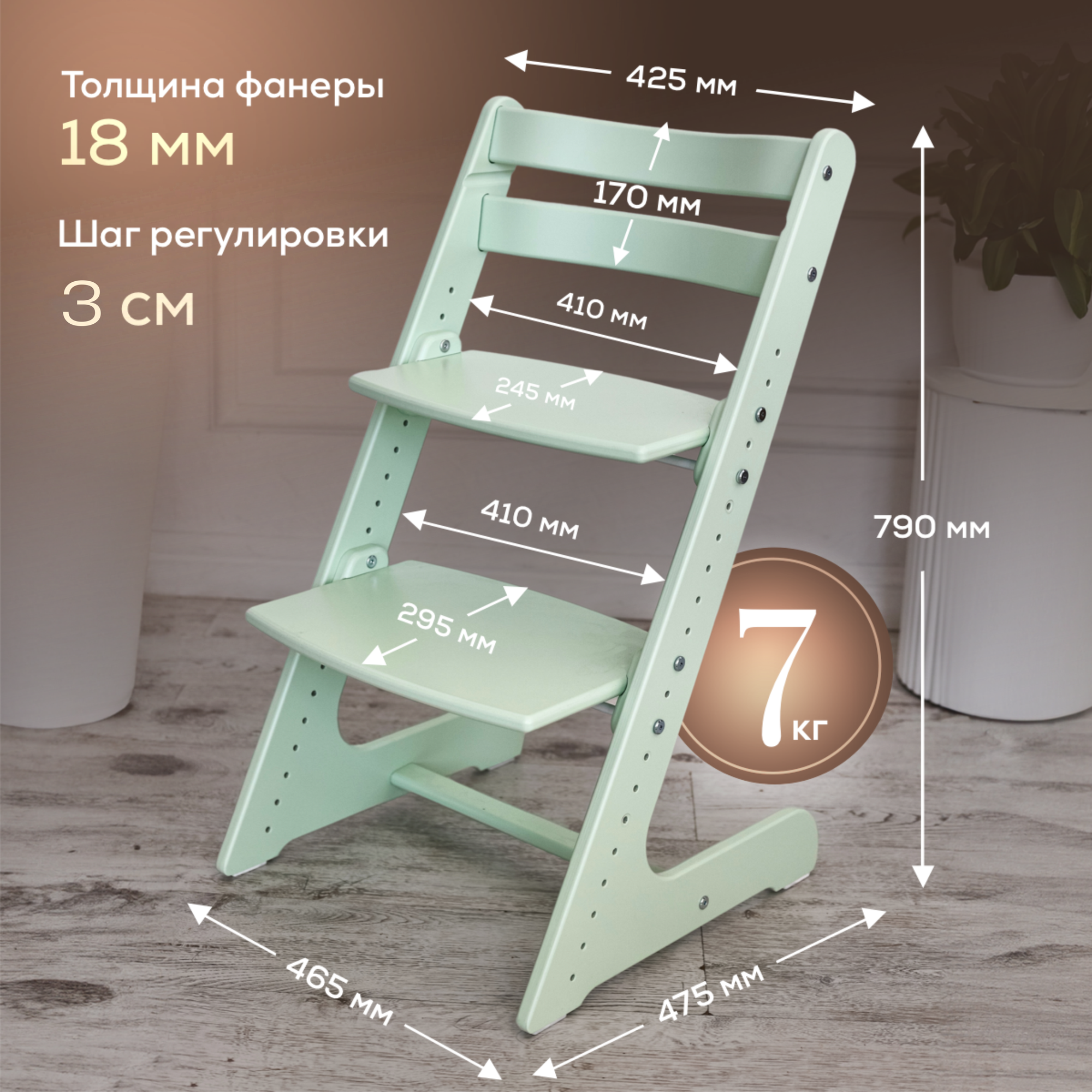 Стулья Растущий стул для детей, детский деревянный стульчик для школьника Конек Горбунек Комфорт, цвет Фисташковый