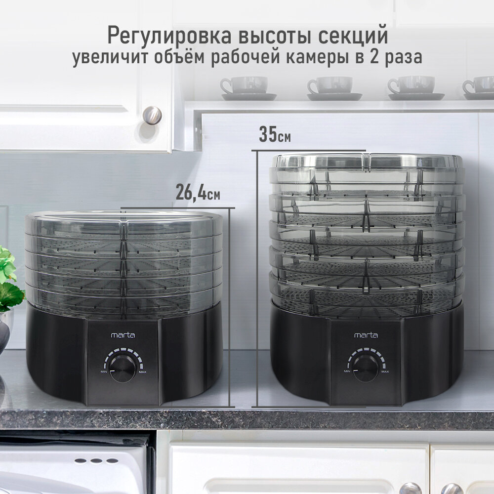 Сушилки фруктов Электросушилка MARTA MT-FD1889B 7 поддонов (5+1 для пастилы+1 для ягод) черный жемчуг
