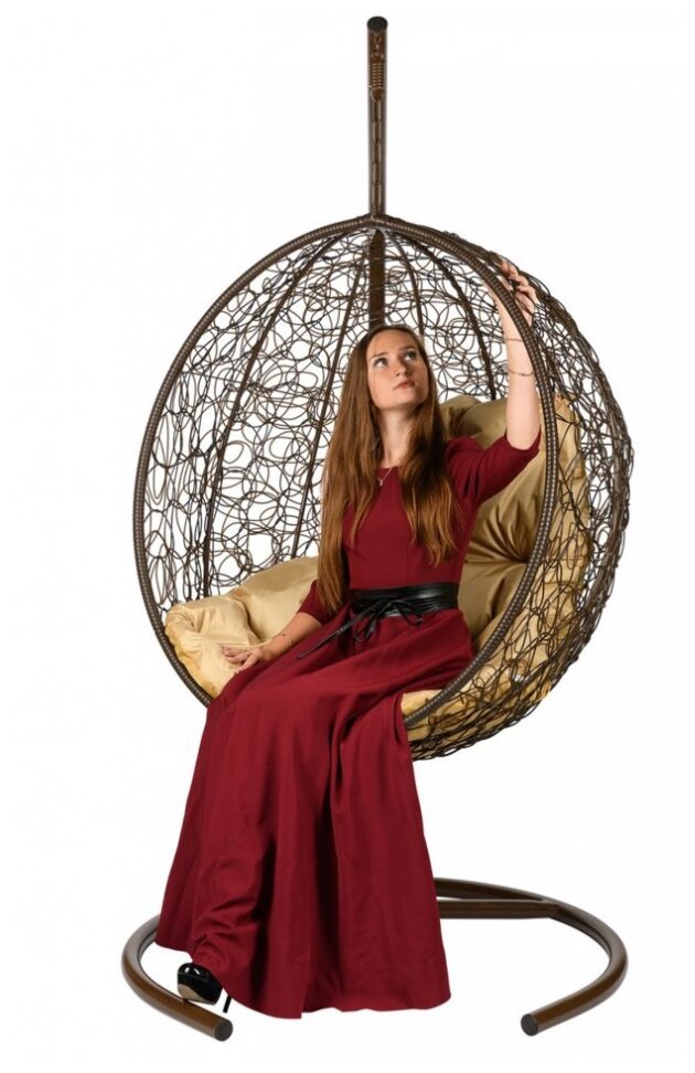 Bigarden Подвесное кресло "Kokos» Brown, бежевая подушка, стойка