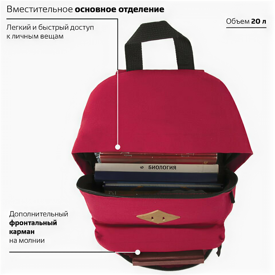 Рюкзак BRAUBERG, универсальный, сити-формат, один тон, красный, 20 литров 41х32х14 см, 225379