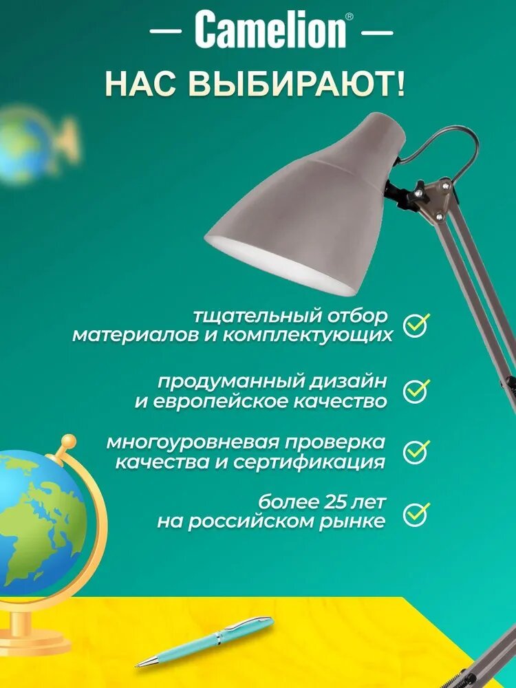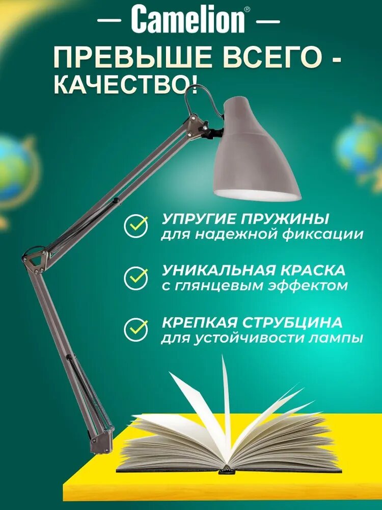 Лампа офисная Camelion KD-335 C09, E27, 40 Вт, серый