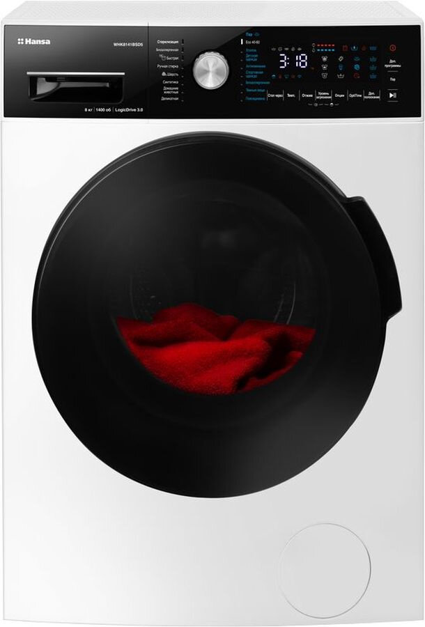 Стиральная машина Hansa WHK8141BSD5, с фронтальной загрузкой, с паром, 8кг, 1400об/мин, инверторная