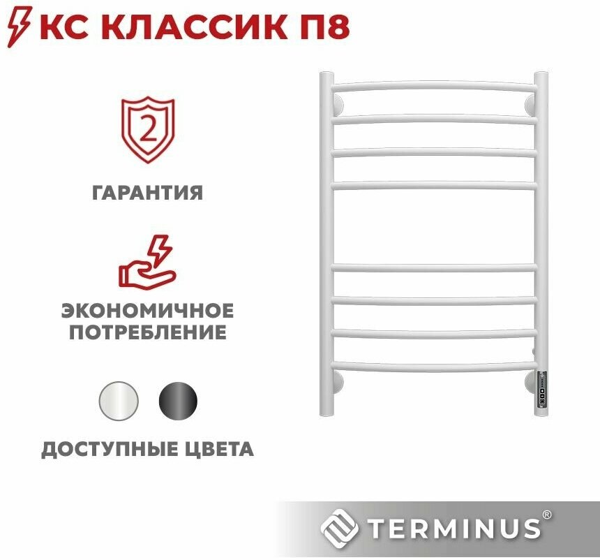 Полотенцесушитель электрический белый TERMINUS (Терминус) Классик П8 КС 500х800 мм, диммер Quick Touch, гарантия 2 года. 7 990 ₽ Подробнее