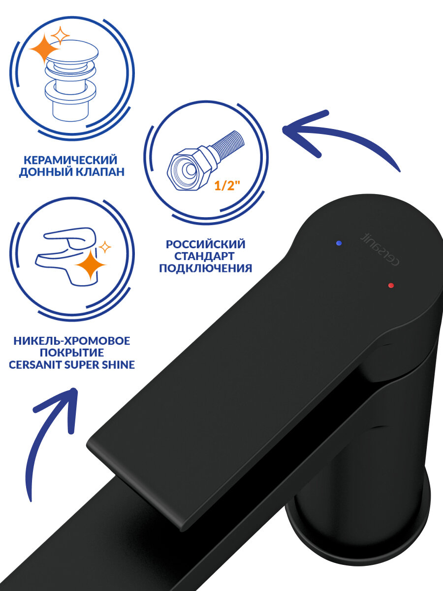 Смеситель для раковины Cersanit Brasko Black с донным клапаном, черный (63107, LM8500BL) 10 247 ₽ Подробнее