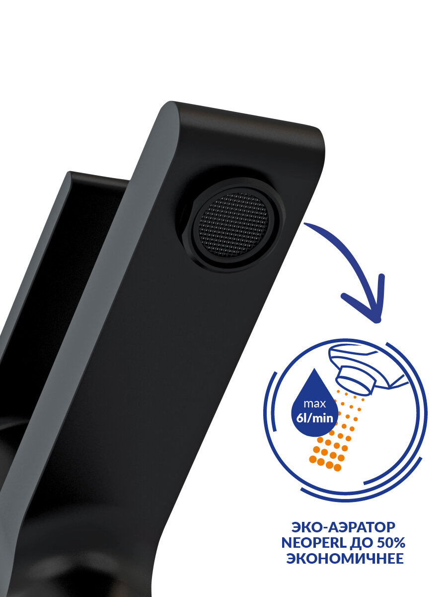 Лучшие цены. Управление: однорычажное, Цвет: черный, Поверхность: матовая, Стилистика дизайна: современный стиль, Материал: латунь, Монтаж: на раковину, Расположение рычага: сверху, Высота излива,см: 10.7, Длина излива, см: 11.6, Форма: округлая, Механизм: керамический картридж, Форма излива: традиционная, Вращение излива: фиксированный, Выдвижной излив: нет, Отверстия для монтажа: на 1 отверстие, Стандарт подводки: 1/2", Тип подводки: гибкая, Донный клапан: есть, Функция экономии расхода: есть, Расход воды, л/мин: 6. Магазины в вашем городе.