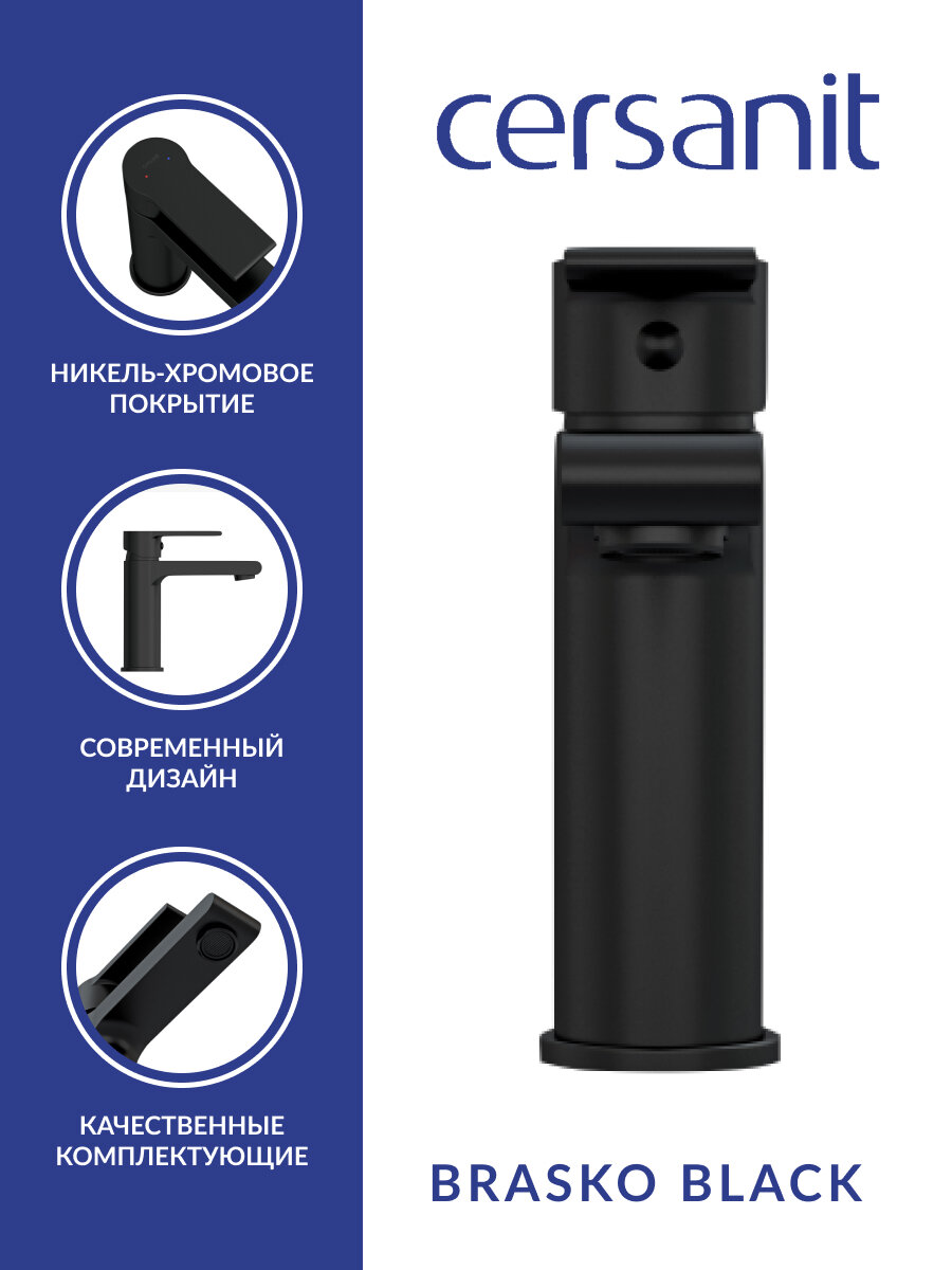 Смеситель Cersanit Brasko Black для раковины, М-размер, черный 63107
