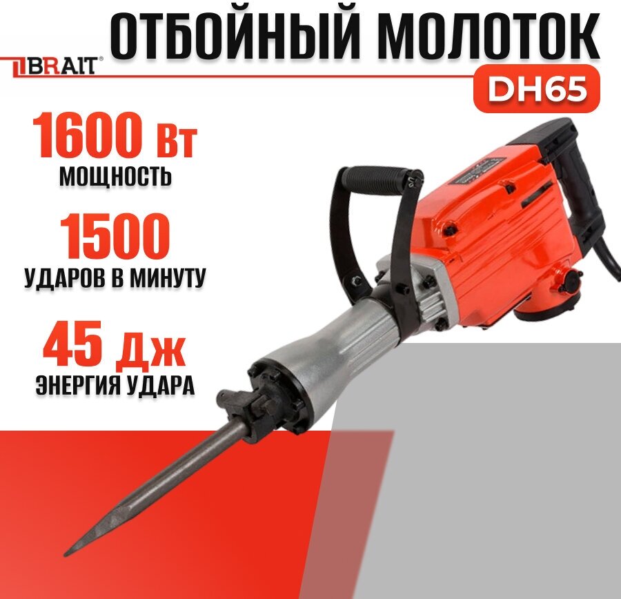 Молоток отбойный электрический BRAIT DH65 (отбойник 1600 Вт, 45 Дж, 220В/50Гц, шестигранный патрон)