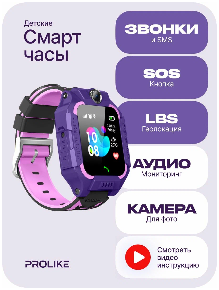 Детские умные часы Prolike PLSW02PP, сиреневые