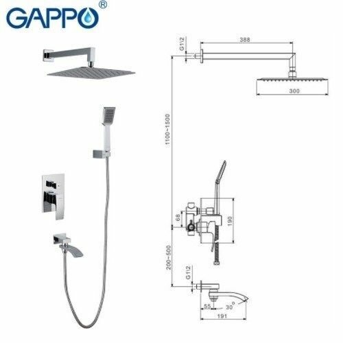 G7107 Душевой комплект Gappo с тропическим душем, встраиваемый, хром