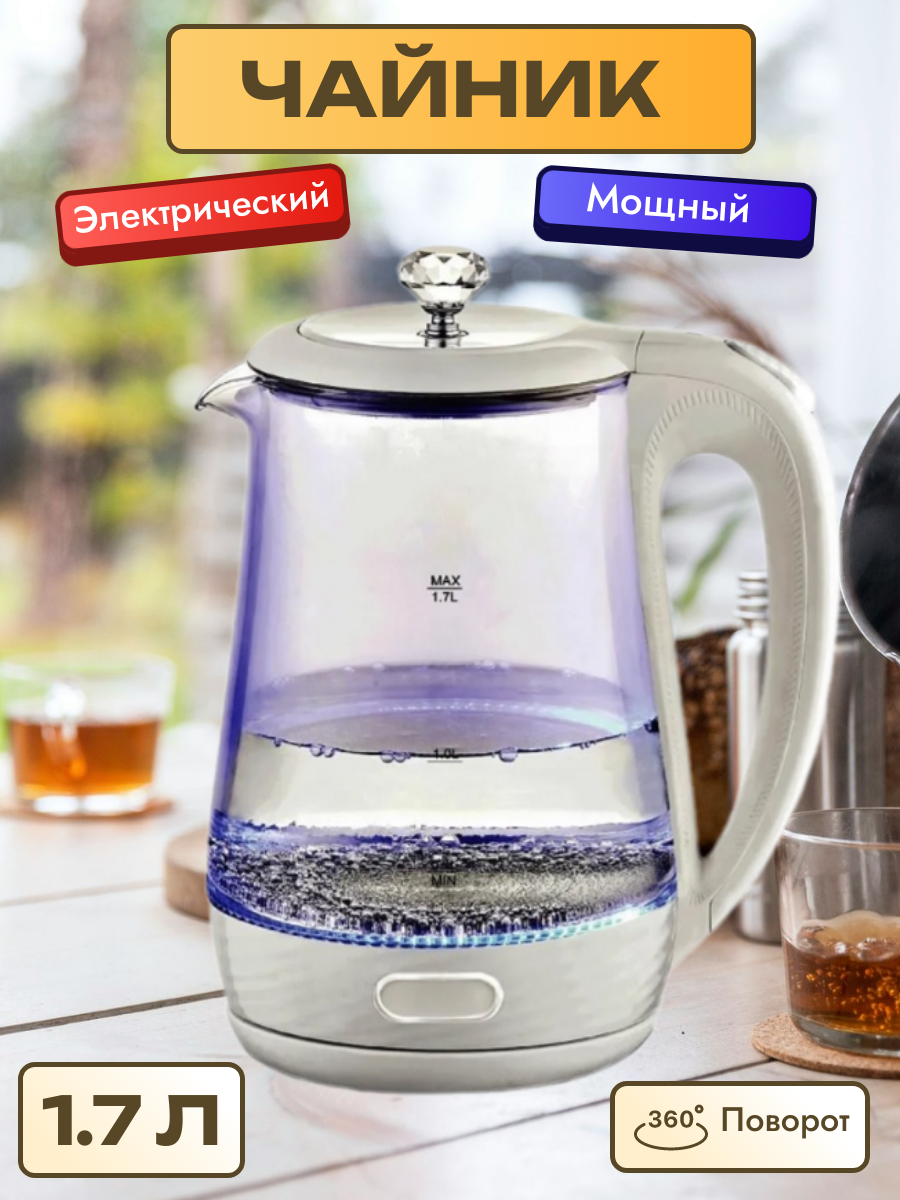 Чайник Kelli KL-1404 (белый) стекло обьем 1,7л