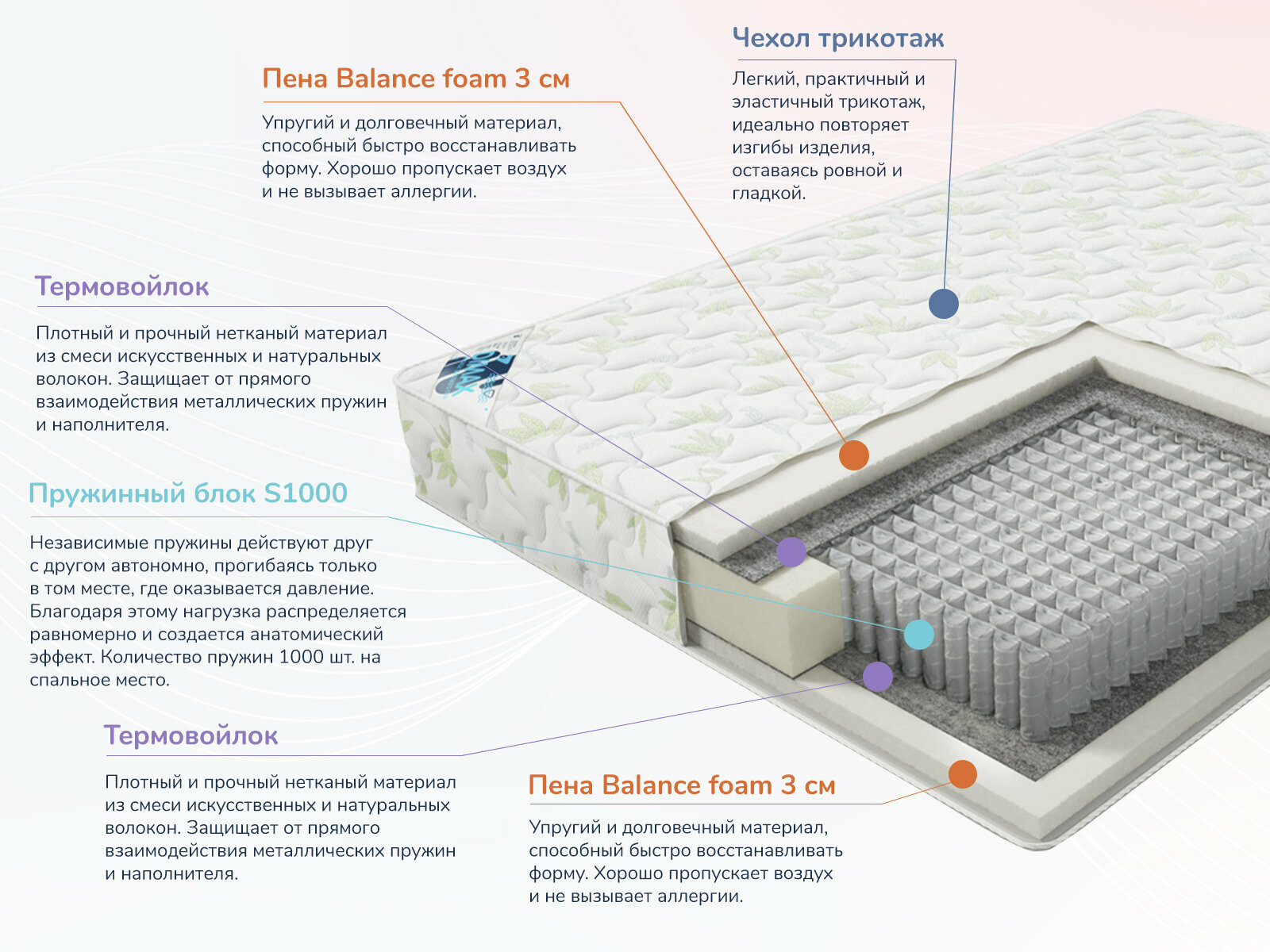 Лучшие цены. Простой и недорогой матрас средней жесткости для больших нагрузок. Самый доступный по цене матрас из серии Мега. Его отличают отличный пружинный блок, высокая прочность и долговечность. Средняя жесткость матраса наиболее комфортна для подавляющего большинства людей в любое время года. Высококачественная пена balance foam — искусственный, гипоаллергенный наполнитель для матрасов. Слой balance foam толщиной 3 см в сочетании с жестким слоем термовойлока делают этот матрас комфортным, надежным, долговечным. Магазины в вашем городе.