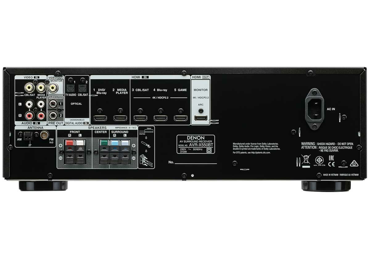 Лучшие цены. 5.2-канальный ресивер Denon AXR-X550BT позволяет создать современный домашний кинотеатр по доступной цене. Смотрите ваши любимые фильмы и шоу с исключительным качеством изображения в форматах 4k Ultra HD и Dolby Vision. Воспроизведение музыки доступно через встроенный Bluetooth или через USB-порт на передней панели. Поддерживаются форматы файлов MP3, WMA, FLAC и DSD. Программа-ассистент по настройке и измерительный микрофон сделают подключение акустики и настройку звука всей системы простым и быстрым. Магазины в вашем городе.