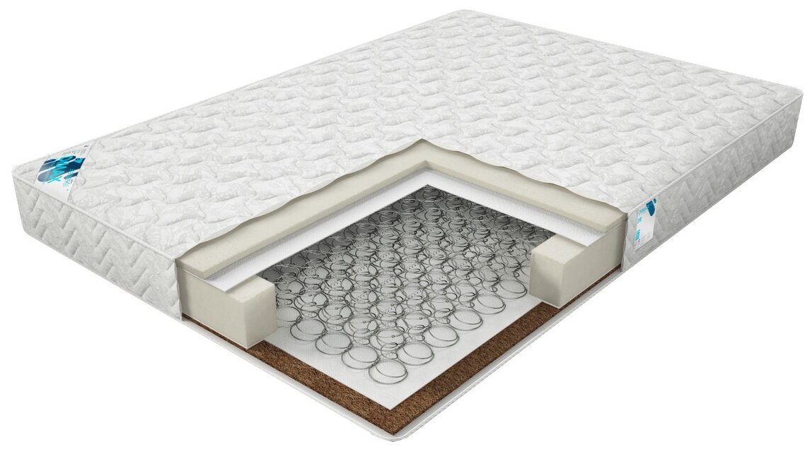 Лучшие цены. Если нужна разная жёсткость Пружинный блок матраса Dimax Практик Базис Хард Bonnel обеспечивает начальную ортопедическую поддержку. Пружины надёжно скреплены между собой в единое прочное полотно. ППУ с одной стороны создаёт приятную мягкую поверхность. Слой койры на обороте добавляет упругости. Аккуратная защита Чехол сшит из плотного жаккарда белого цвета. Материал простёган на подкладке из холлофайбера. Плотно обтягивает наполнители, долго держит форму. Можно заказать съёмный вариант на молнии. Магазины в вашем городе.
